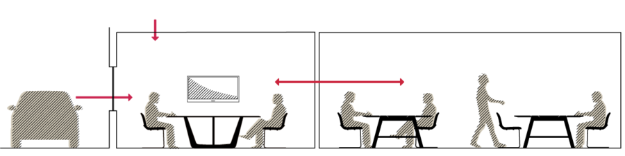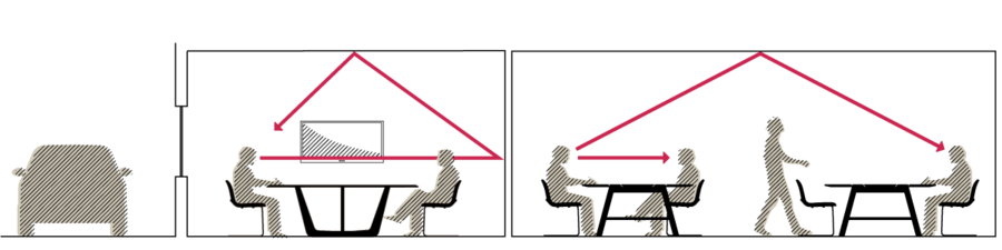 + Sound is transferred between adjacent rooms, e.g. an adjacent meeting room