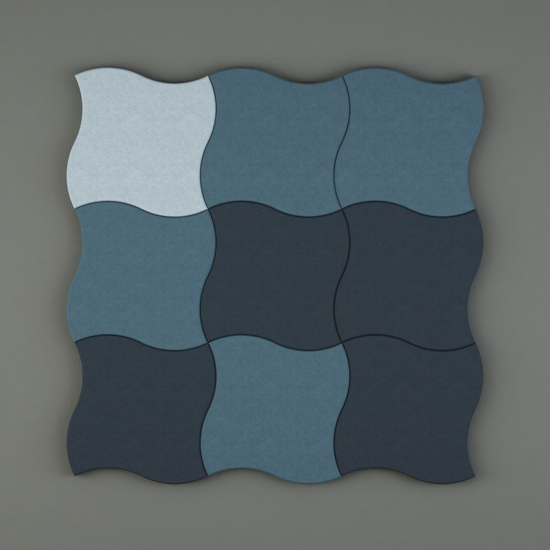 Ocean wall family are available in two different sizes easy suitable with open space or in a cramped room . To give the wall absorbents character we created a beveled edge of 8 x 8 mm around each panel that catches the light beautifully. In the development of Ocean we have carefully selected a number of suggestions of materials and colors that we believe can inspire to beautiful and functional wall environments.​