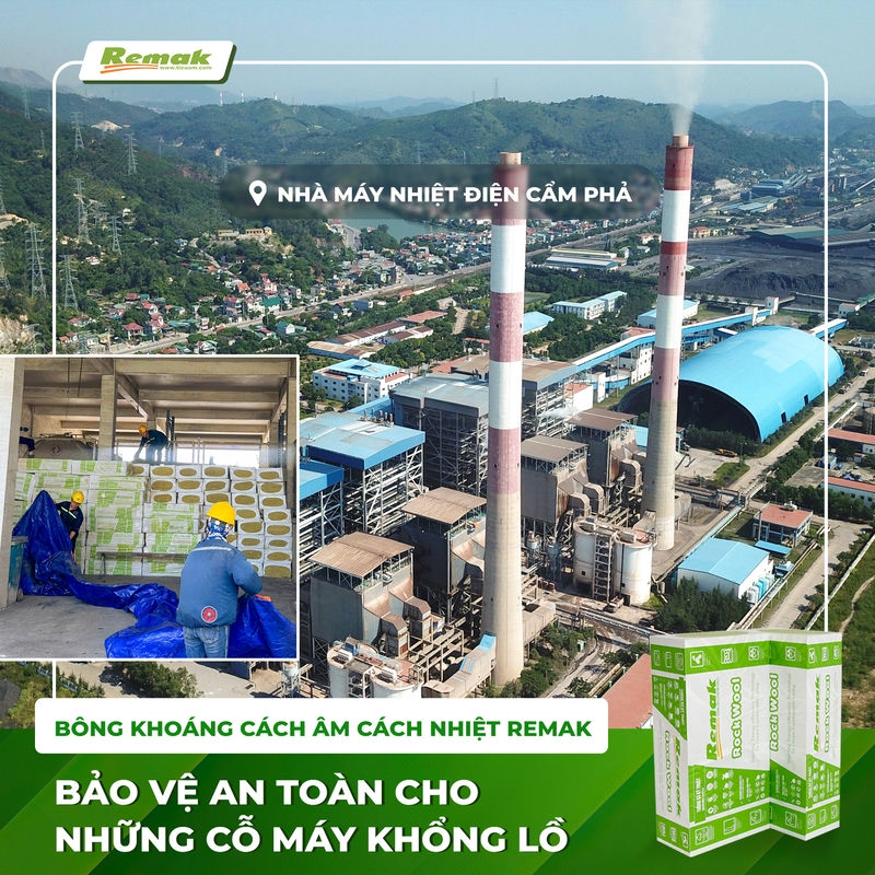 Khám phá lý do bông khoáng Remak được chọn cho Nhà máy Nhiệt điện Cẩm Phả – giải pháp cách âm, cách nhiệt và chống cháy hiệu quả cho hệ thống lò hơi, turbine và đường ống công nghiệp.