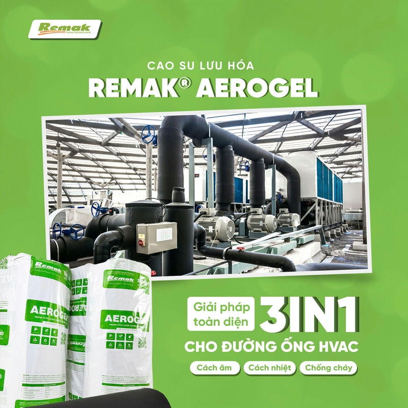 Cao Su Lưu Hóa REMAK® AEROGEL: Giải Pháp Toàn Diện 3in1 Cho Đường Ống HVAC - Cách Âm, Cách Nhiệt, Chống Cháy Vượt Trội