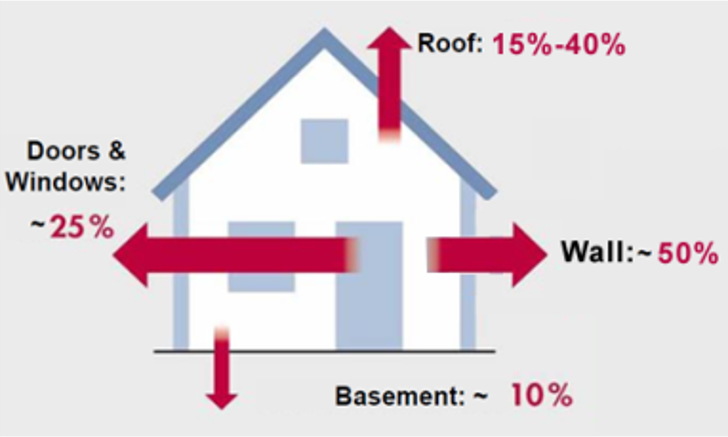 Theo thống kê nhiệt truyền và hấp thụ chủ yếu qua khu vực tường và mái nhà
