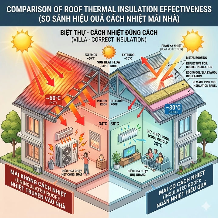 Có thể nói rằng, mặc dù chỉ là một lớp vật liệu trong cấu tạo công trình, nhưng cách nhiệt lại đóng vai trò rất lớn trong việc quyết định chất lượng môi trường bên trong. Chính vì vậy, việc đầu tư cho giải pháp cách nhiệt ngay từ giai đoạn thiết kế và thi công sẽ mang lại hiệu quả lâu dài cho toàn bộ vòng đời sử dụng của công trình.