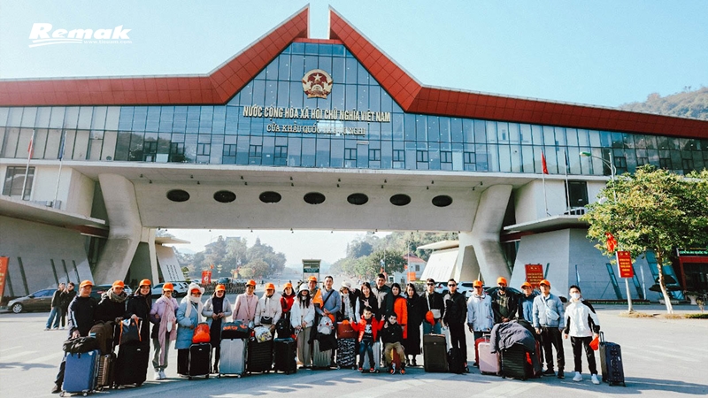 Chụp hình lưu niệm tại cửa khẩu Hữu Nghị