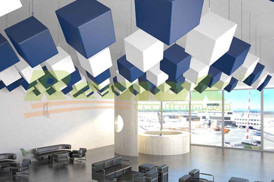 Các tấm tiêu âm hình đám mây thường được treo song song với trần nhà, và chúng có thể hấp thụ sóng âm thanh trong và ngoài phòng nhờ 2 đặc điểm sau: