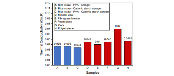 Nghiên cứu cũng cho thấy rơm rạ sau có hệ số truyền nhiệt 0.036 W / m • K, trong khi sợi thủy tinh có hệ số truyền nhiệt 0.04 W / m • K và bông khoáng là 0.045