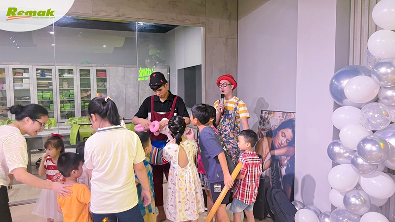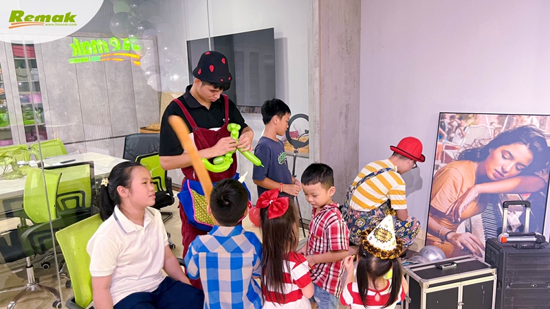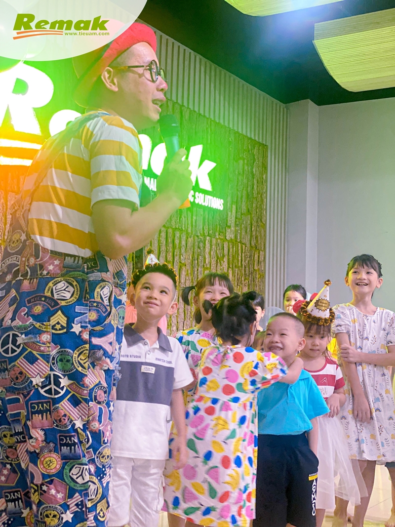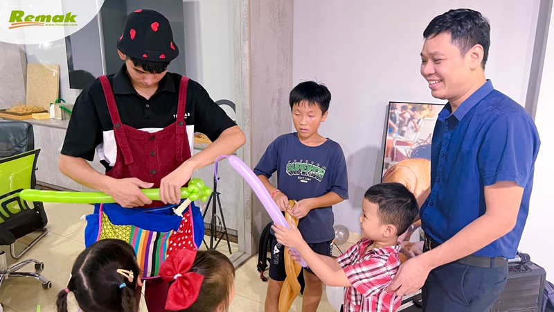 Chú hề Trịnh Tuấn Hải cho biết: “Nhóm em đã tham gia biểu diễn ở nhiều bữa tiệc, sinh nhật, thôi nôi… và đây là đầu tiên đến góp vui tại một công ty có khu văn phòng hiện đại, xanh mát; bố mẹ cùng các bạn nhỏ đều vô cùng dễ thương. Em tin rằng sau này sẽ có thêm nhiều doanh nghiệp chú trọng đến hoạt động khuyến học kết hợp thư giãn, giải trí thiết thực, đầy ắp tiếng cười trẻ thơ như Remak!”