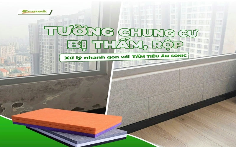 Phân tích nguyên nhân tường chung cư bị ngấm thấm lâu ngày, tác hại đến lớp hoàn thiện và không gian sử dụng. So sánh các giải pháp xử lý từ bên trong căn hộ và giới thiệu giải pháp hoàn thiện khô bằng tấm tiêu âm trang trí Remak Acoustic Sonic.